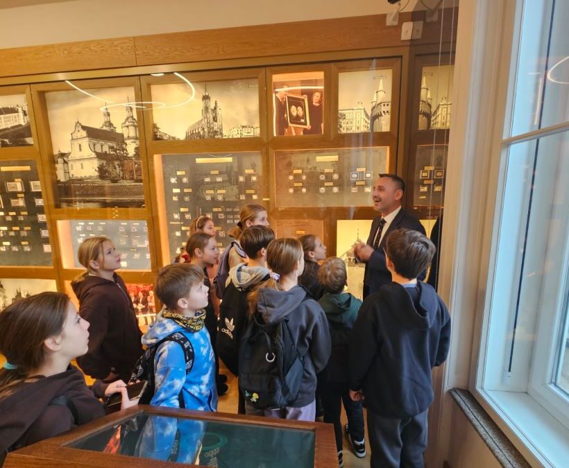 21 listopada uczniowie 4C wybrali się do Krakowskiego Salonu Ekonomicznego Narodowego Banku Polskiego, mieszczącego się w zabytkowym gmachu przy ul. Basztowej 20. To niezwykle ciekawe miejsce, w którym można odkryć historię polskiego pieniądza w nowoczesnej i angażującej formie.